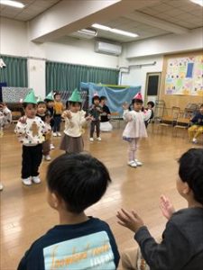 今日はクリスマス会を行いました。 子どもたちは、クラスでお楽しみを練習をしたり、サンタクロースに会えることを楽しみにしたりしていました。 ダンスやペープサート、ブラックシアターなどこれまで練習してきたことを見てもらったり、他のクラスのお楽しみを見たりすることを楽しみました。 また、ときわ幼稚園にもサンタクロースが遊びにきてくれました。 子どもたちは「どうしてソリに乗っているの?」「どうやってお家に入るの?」などサンタクロースに聞きたかったことが聞けて喜んでいました。 クリスマス会が終わった後も「サンタさんまた来てほしいな」「お家にも来てくれるかな」とクリスマスの日を楽しみにしている子どもたちでした。
