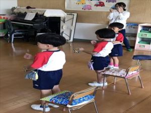 楽器を鳴らすところとや休むところを意識しながら、リズムを打とうとする姿が見られました。