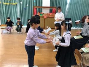 誕生児は、「好きな色は何色ですか?」「好きな食べ物は何ですか?」と年長児から質問されたことに答えたり、