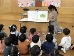 いつもとは違う大きな絵本に子どもたちはワクワクした様子でした。