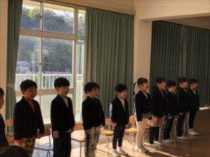 終業式では、園長先生から冬休みの約束事を聞いたり、