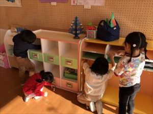 終業式の後は、保育室の棚や靴箱など拭いて幼稚園を綺麗にしました。