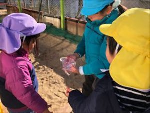 また、週末に容器に水を入れ氷をつくっていた子どももいました。
