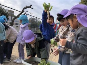大根が大きくなっていることを楽しみにしながら、みんなで収穫しました。